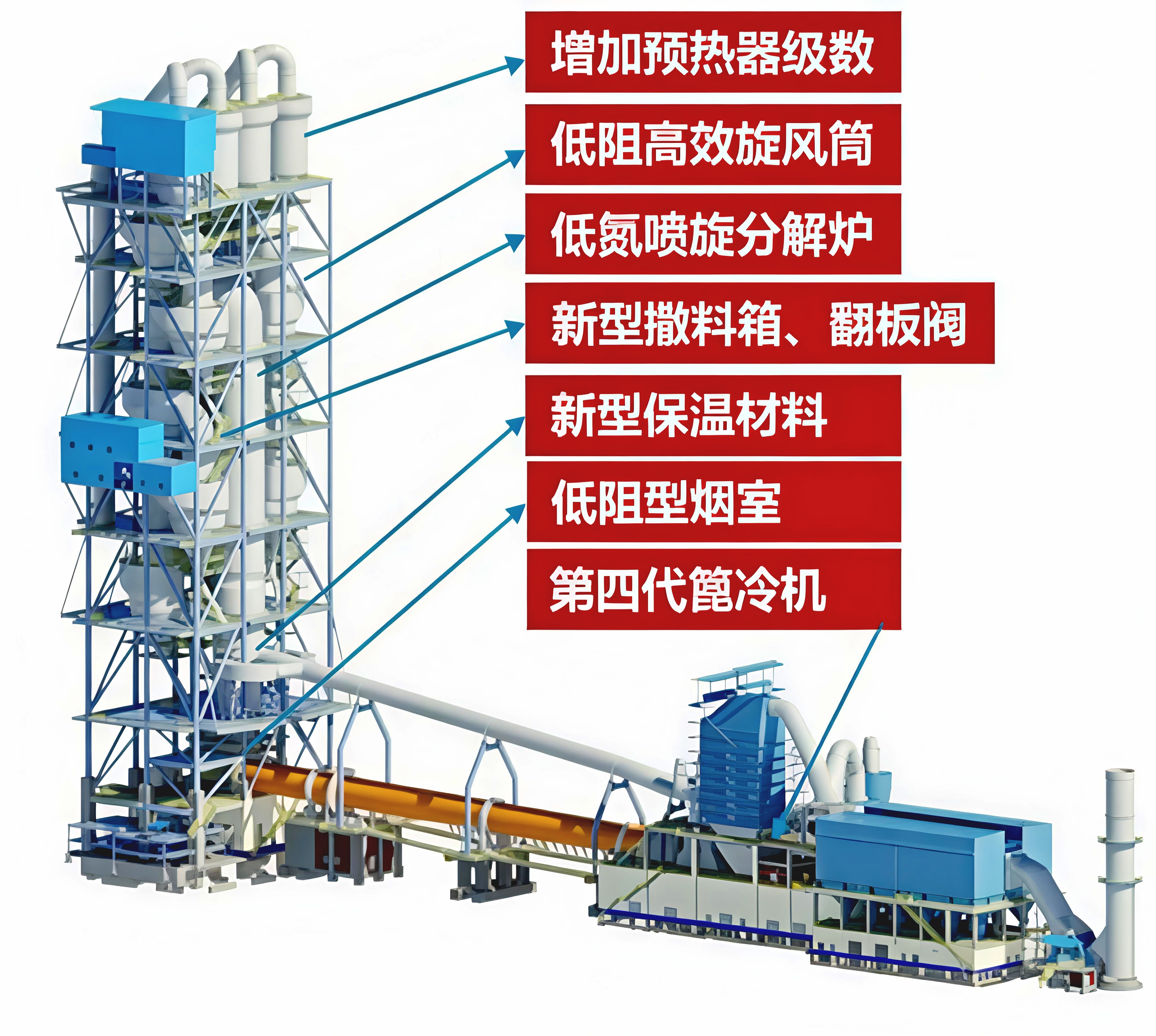 | 7 | Introduce air and material preheating technology into the system | Make use of waste heat for increasing the temperature of primary air and raw meal fed into the kiln | Determine based on actual conditions |